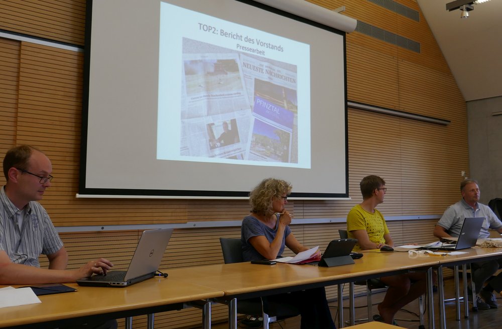 Die Grünen aus Pfinztal konnten bei ihrer Jahreshauptversammlung im Selmnitzsaal auf ein erfolgreiches und abwechslungsreiches Jahr zurückblicken. Seit der Neuwahl des Vorstands im Juli 2019 gab es viele Aktivitäten und steigende Mitgliederzahlen. Ein Highlight war sicherlich der Neujahrsempfang 2020, aber auch die zunehmende Präsenz der Grünen in der Kommunalpolitik, in den Medien und im Internet. Auf dem „Digitalen Dorfplatz Crossiety“ sind die Grünen bereits vertreten. Aktuell läuft eine Umfrage, wie die Menschen in Pfinztal von der Coronakrise persönlich betroffen sind. Die Ergebnisse werden in Kürze bekanntgegeben. Die Aktivitäten in den letzten zwölf Monaten reichten von regelmäßigen Vorstandssitzungen, über die Herbstwanderung auf dem Naturerlebnispfad, die aktive Teilnahme am Projekt „Stadtradeln“ bis hin zu Vernetzungsarbeit auf Kreis- und Landesebene. Im Vordergrund stand auf der Jahreshauptversammlung aber nicht der Blick zurück, sondern nach vorne. Die Gemeinderätin Sonja Rothweiler gab ihr Amt als Kassiererin wegen der Belastung durch mehrere Ämter ab. Nicole Schwarz wurde zu ihrer Nachfolgerin gewählt. Für die Zukunft gibt es zahlreiche Ideen, für die bereits Weichen gestellt wurden: Etablierung eines grünen Infostands, Fachvortrag zum Thema erneuerbare Energien, Bürgerbeteiligung als Leitthema für 2021, Aktion zur Umsetzung der UN-Behindertenkonvention und wieder ein Neujahrsempfang mit fetziger Musik. Ein Urgestein der Grünen in Pfinztal, Gemeinderat Artur Herb, war so angetan von dem Verlauf des Abends, dass er den Wunsch nach häufigeren Mitgliederversammlungen äußerte.
