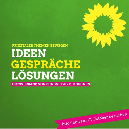 Am Samstag, dem 17. Oktober, während der Marktzeit von 8 bis 12 Uhr, gibt es unseren Informationsstand vor dem früheren Gasthaus Adler im Ortszentrum von Berghausen (Straße "Am Bahnhofsplatz"). Die Bürgerinnen und Bürger haben Gelegenheit, mit grünen Ortsverbandsmitgliedern und grünen Gemeinderät*innen ins Gespräch zu kommen. Dabei kann es um lokale, aber auch um grundsätzliche Themen gehen wie Klimaoffensive, Verkehrskonzepte, die Verteidigung der Demokratie oder Chancengerechtigkeit. Wir freuen uns auf die Begegnungen und Diskussionen. Dem Infektionsschutz tragen wir durch Einhaltung der Abstands- und Hygieneregeln Rechnung.